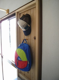そこにシェーカーペグを打ち子供用の小物掛けにしました。