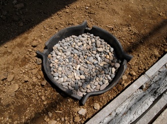 その中に玉砂利を敷き詰め雨水を浸透させます。