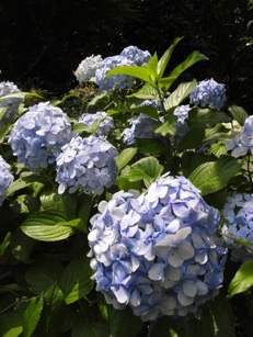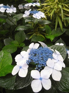 アトリエ前の森では梅雨を彩る紫陽花とガクアジサイが見頃をむかえ